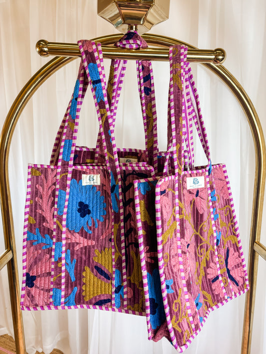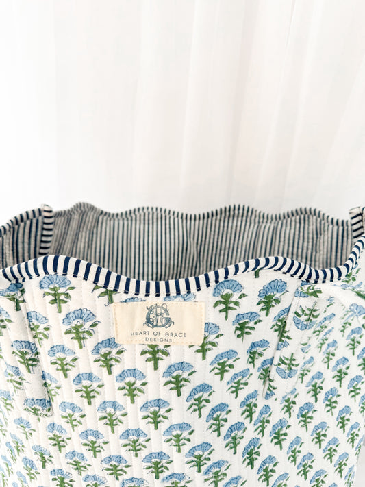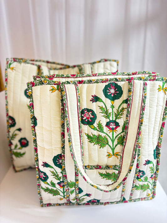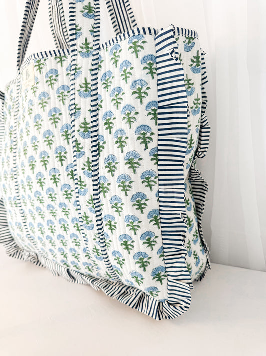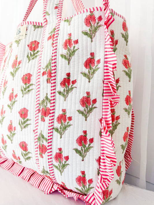 Magnolia Rose’ | Large Quilted Ruffle Tote Bag
