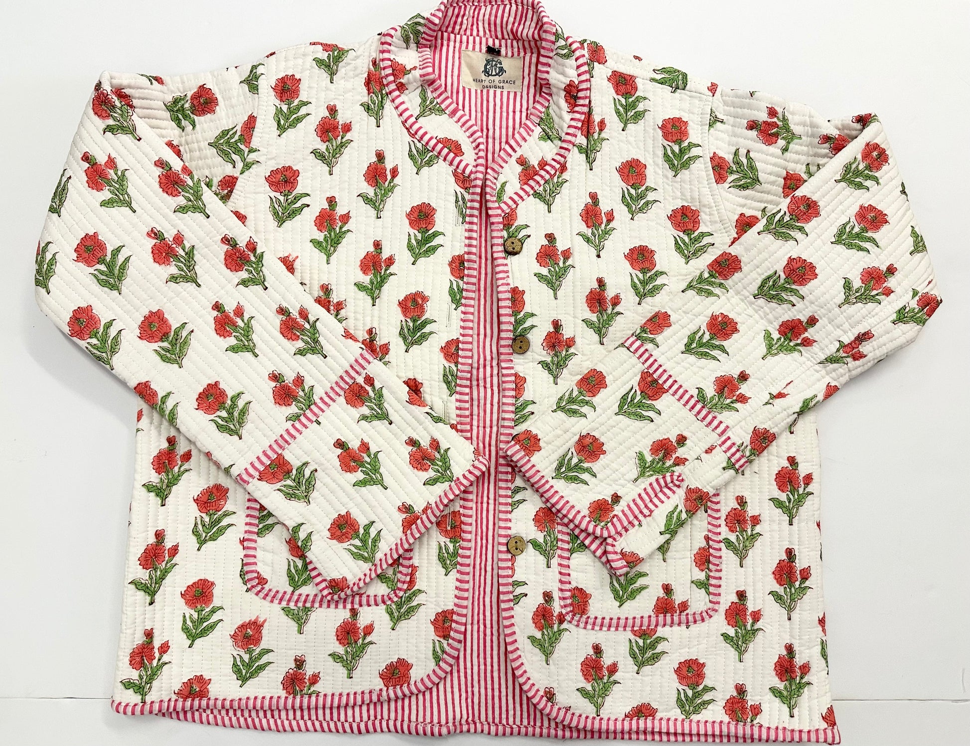 These jackets are handcrafted using block ink printing and colors may have mild variations from photos which makes each jacket unique.
